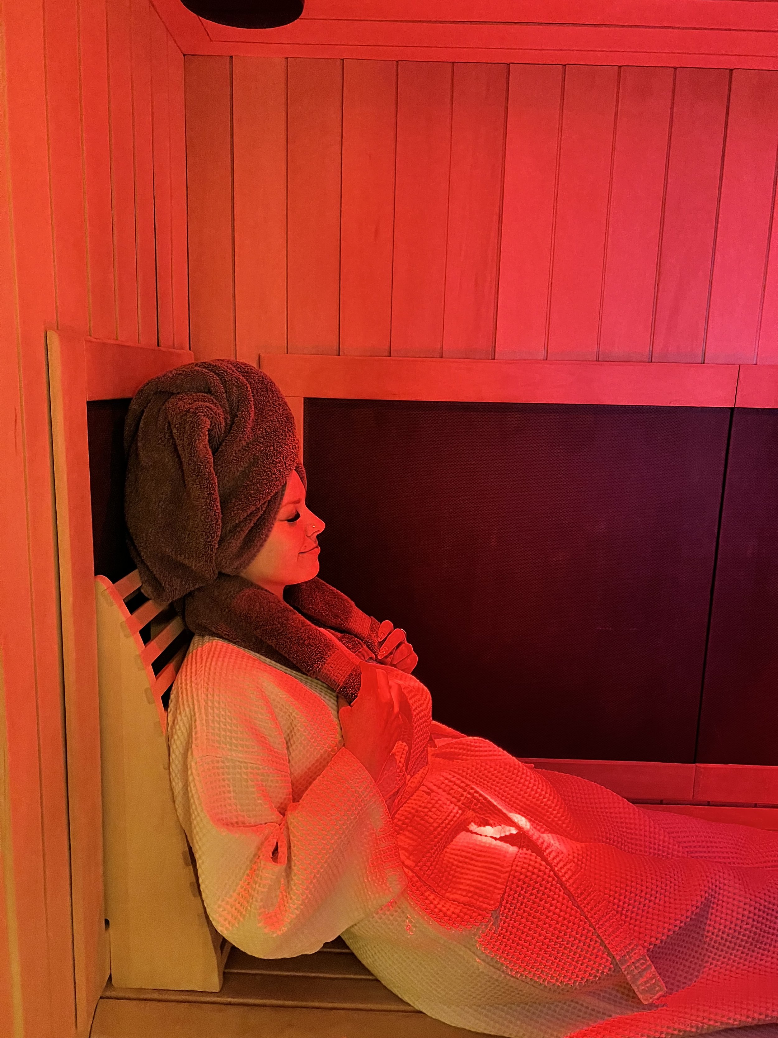 Your personalized 30-minute infrared sauna session in a private room. Towels, robe + water included.